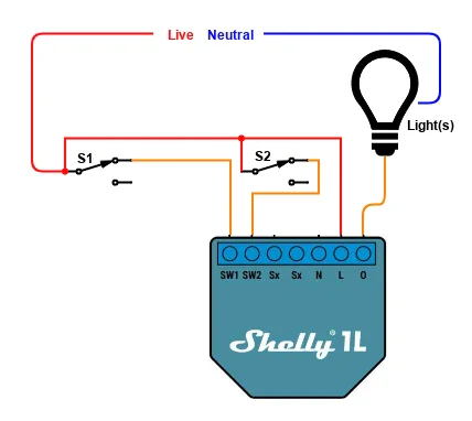 In this guide we will explain how a Shelly 1L can be used to provide two way switching